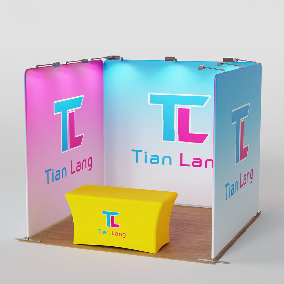 แท่นจัดแสดงนิทรรศการงานโฆษณาแบบพกพาขนาด10 * สำหรับจัดแสดงนิทรรศการ10FT และฉากหลังโลโก้แบบกำหนดเอง