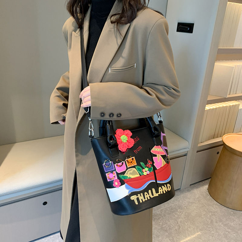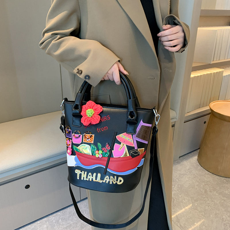 กระเป๋าถือสะพายข้างทรงบัคเก็ต ลายการ์ตูนเรขาคณิต สไตล์เรโทร สำหรับผู้หญิง คอลเลคชั่นฤดูใบไม้ร่วง-ฤดูหนาว รุ่นใหม่ล่าสุด ดีไซน์เก๋ไก๋ สะพายไหล่เดียวหรือสะพายข้างได้ ถอดสายได้ รหัสสินค้า 94481