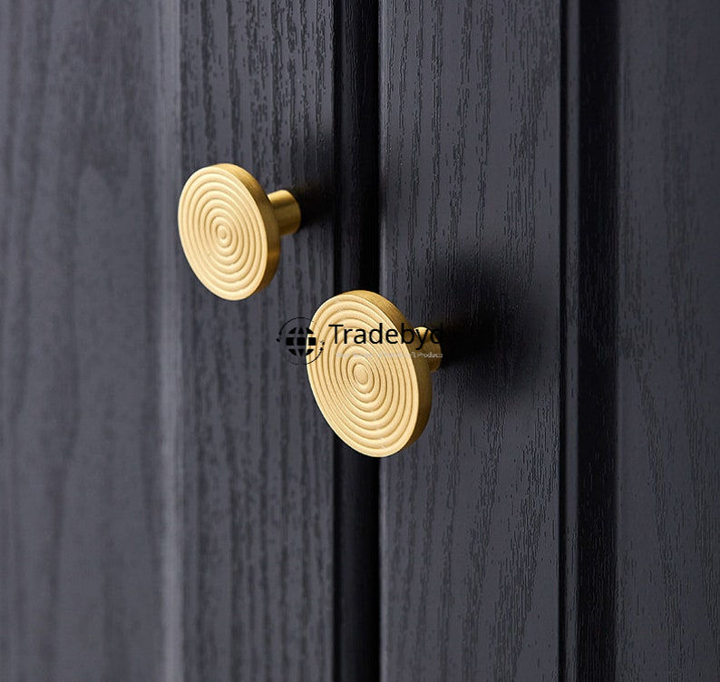 Tradebyd ลิ้นชักทำมือทำจากทองเหลืองคลาสสิกที่เรียบง่ายคุณภาพระดับพรีเมียมทนทานเป็นมิตรกับสิ่งแวดล้อมลูกบิดดึงที่จับสำหรับห้องครัวห้องน้ำ