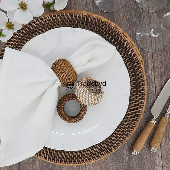Tradebyd ห่วงผ้าเช็ดปากหวายหรูหราอุปกรณ์เสริมโต๊ะอาหารสำหรับบ้านไร่ที่เป็นมิตรกับสิ่งแวดล้อม