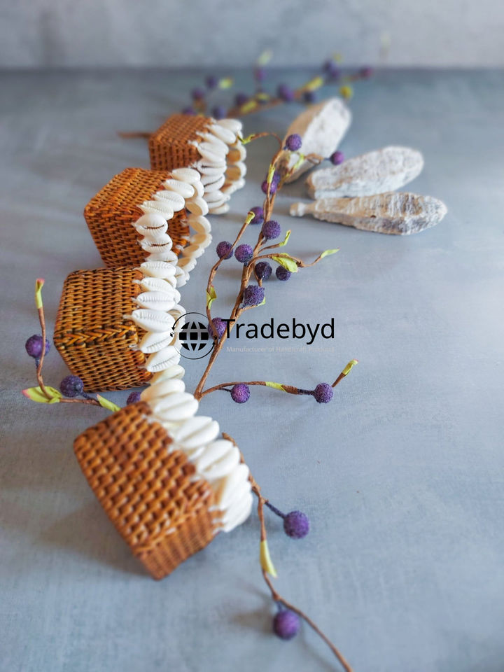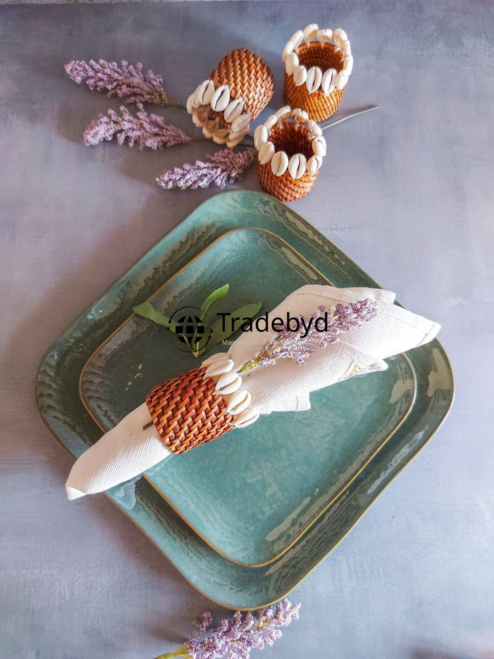 Tradebyd ห่วงผ้าเช็ดปากหวายสไตล์โบฮีเมียนตกแต่งโต๊ะรับประทานอาหารธรรมชาติเป็นมิตรกับสิ่งแวดล้อม