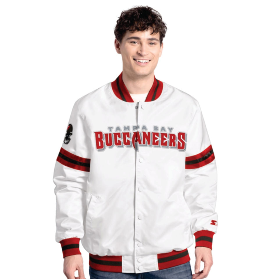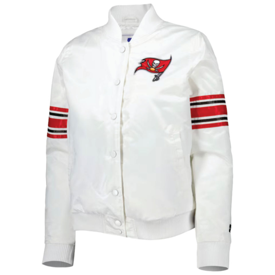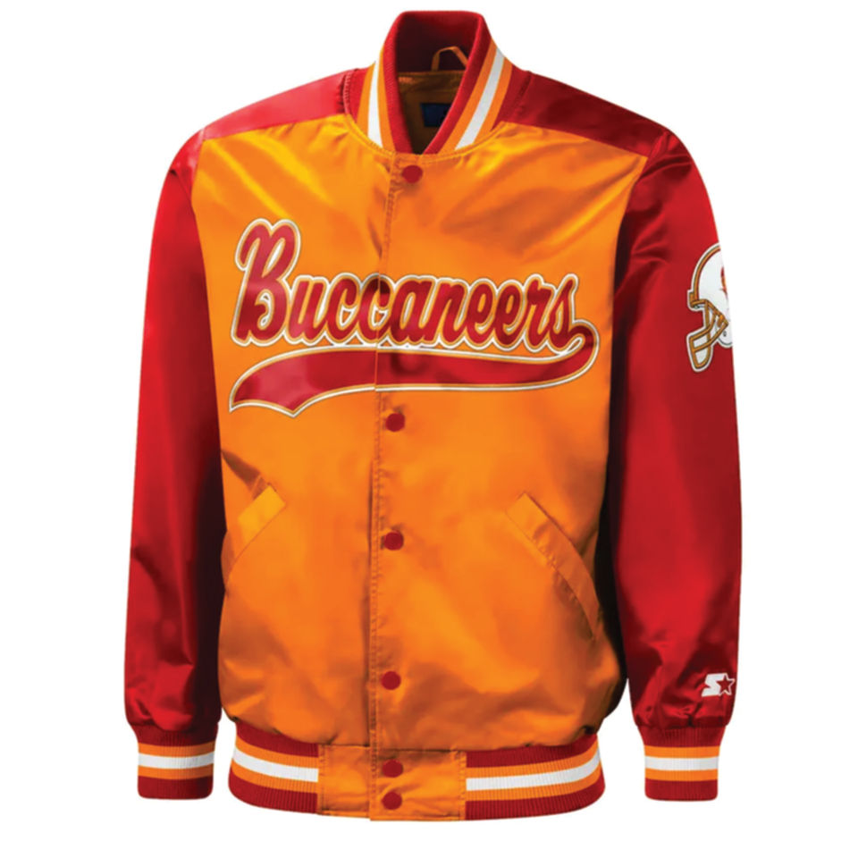 เสื้อแจ็คเก็ตวาร์ซิตี้ผ้าซาตินแบบกลับด้านได้ สีส้ม/แดง ลายโลโก้ด้านหน้า ของทีมแทมปา เบย์ บัคคาเนียส รุ่นรักษ์โลก สำหรับฤดูหนาว