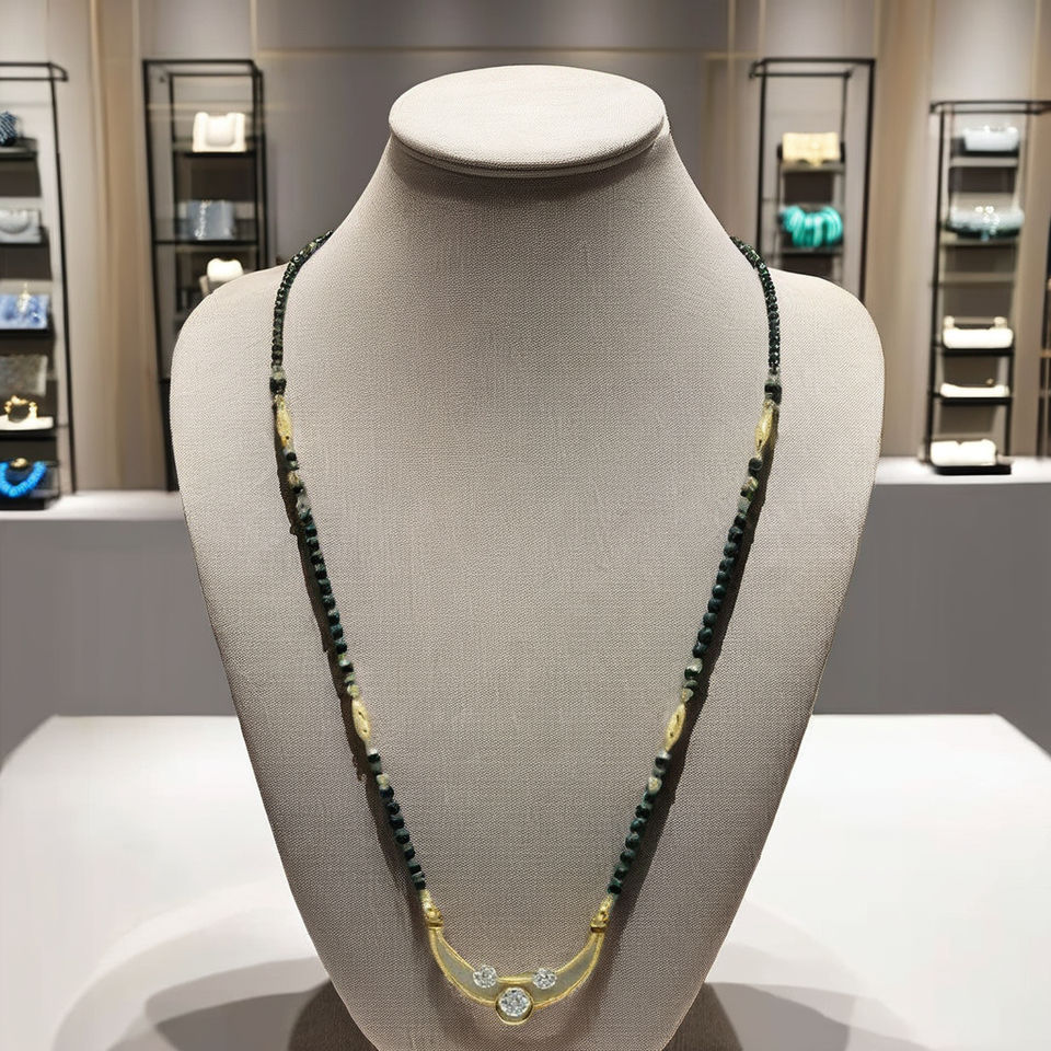 สร้อยคอลูกปัดสีดำชุบทอง 22K แบบอินเดียโบราณ ประดับมุกและเพทาย ดีไซน์เรียบง่าย เหมาะสำหรับสวมใส่ทุกวันสำหรับผู้หญิง