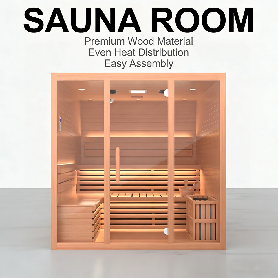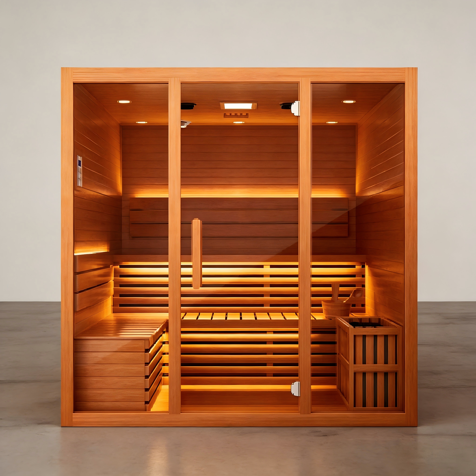 ห้องซาวน่าอบไอน้ำแบบดั้งเดิมสำหรับ 4 คน พร้อมแผงควบคุมด้วยคอมพิวเตอร์