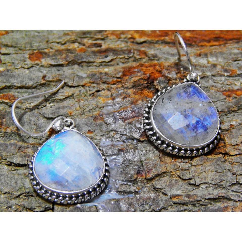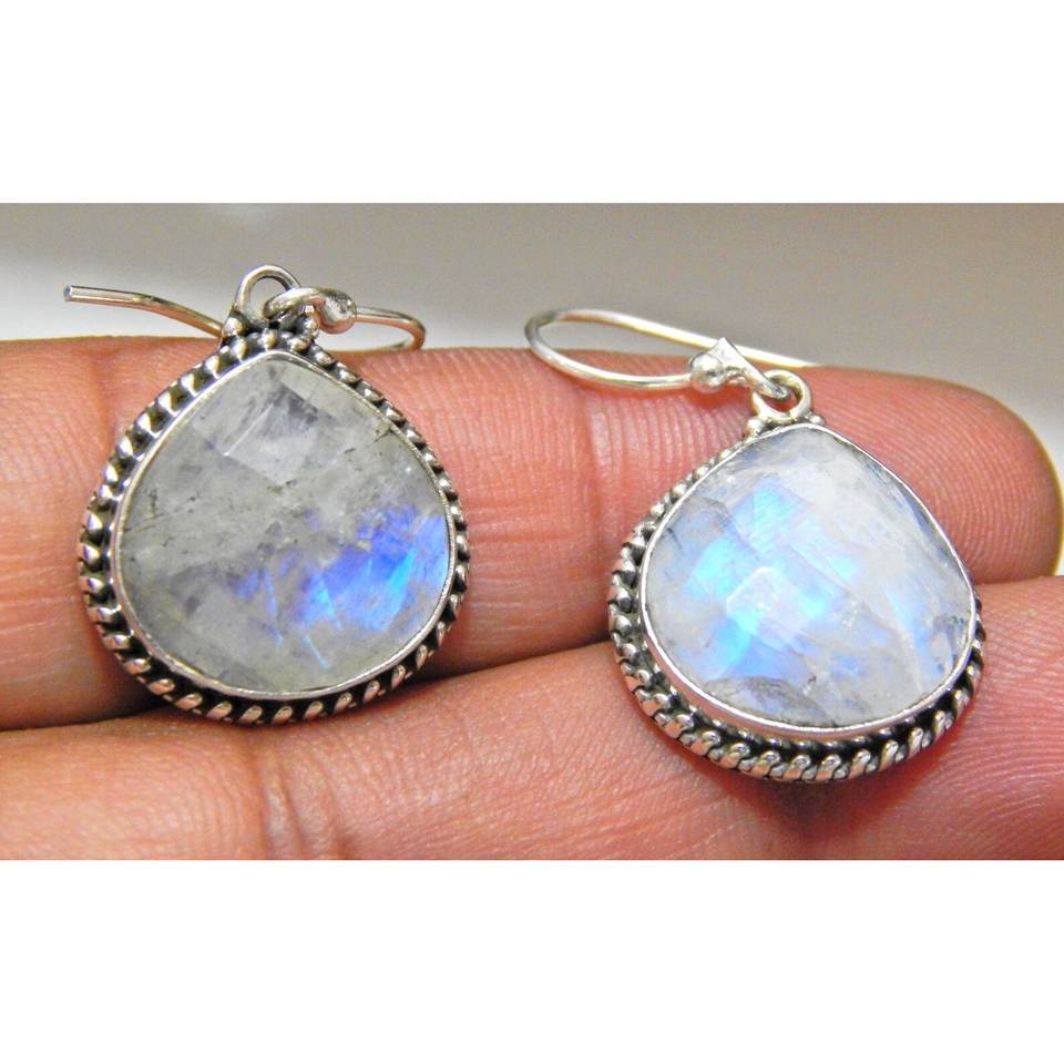 ต่างหูเงินแท้925แบบดั้งเดิมพลอยควอตซ์มูนสโตนธรรมชาติของขวัญวันครบรอบที่สมบูรณ์แบบสำหรับเงินของเธอ