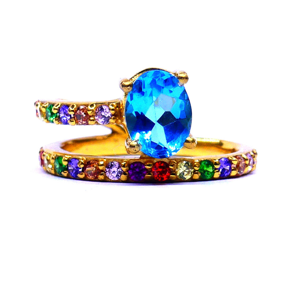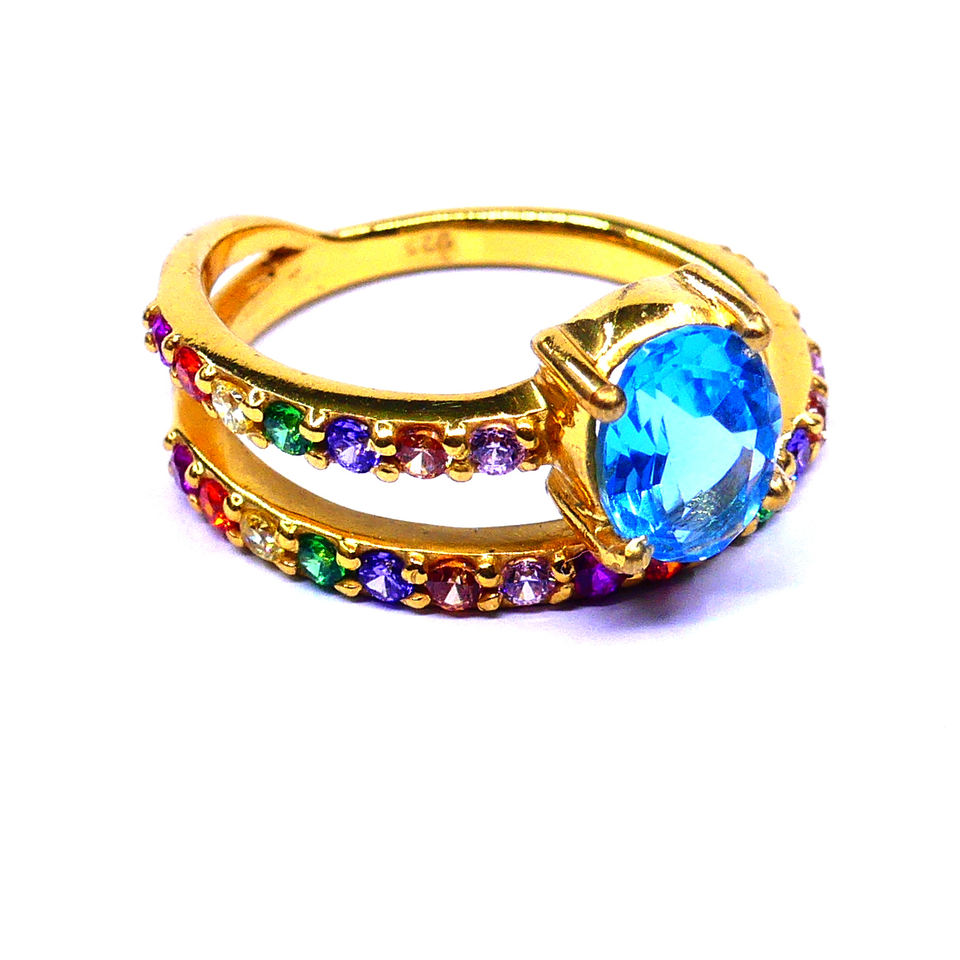 แหวนแฟชั่นหลากสีประดับอัญมณีหลากสีชุบทองเงินสเตอริง925ดั้งเดิม