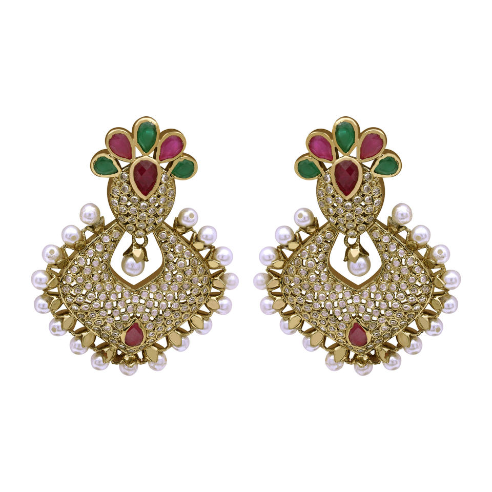 ต่างหูแบบดั้งเดิม AD Dangle Earrings แฟชั่นทันสมัยสำหรับงานปาร์ตี้ ทำจากทองเหลือง เครื่องประดับแฟชั่นสำหรับผู้หญิง ชุบเมห์นดี ขนาดปรับแต่งได้ ส่งออกขายส่ง