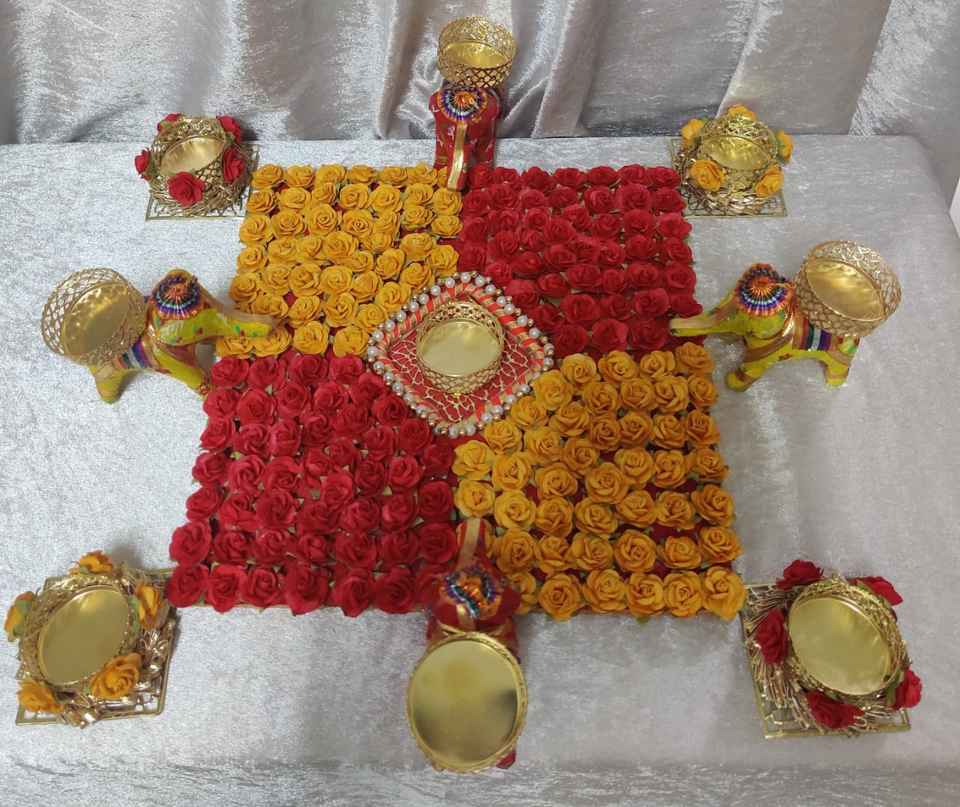 ชุดรังโกลีทรงดอกบัวทำจากโลหะหลายสีอะคริลิคแบบดั้งเดิมพร้อมโกต้าไฟเทียนสำหรับตกแต่งบ้านเทศกาลดิวาลี