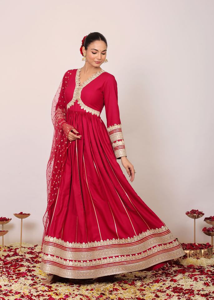 ชุดกูรติอนาร์กาลี ประดับงานกอต้าที่ชายเสื้อ
