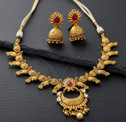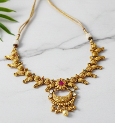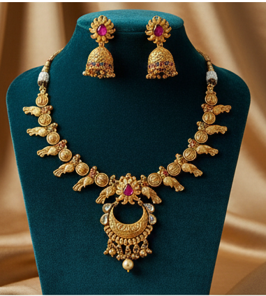 ชุดสร้อยคอโบราณแบบดั้งเดิม ประดับด้วยการขัดเงาด้วยทองคำอย่างดี ให้ความรู้สึกหรูหราสง่างาม เหมาะสำหรับเจ้าสาวในงานแต่งงาน