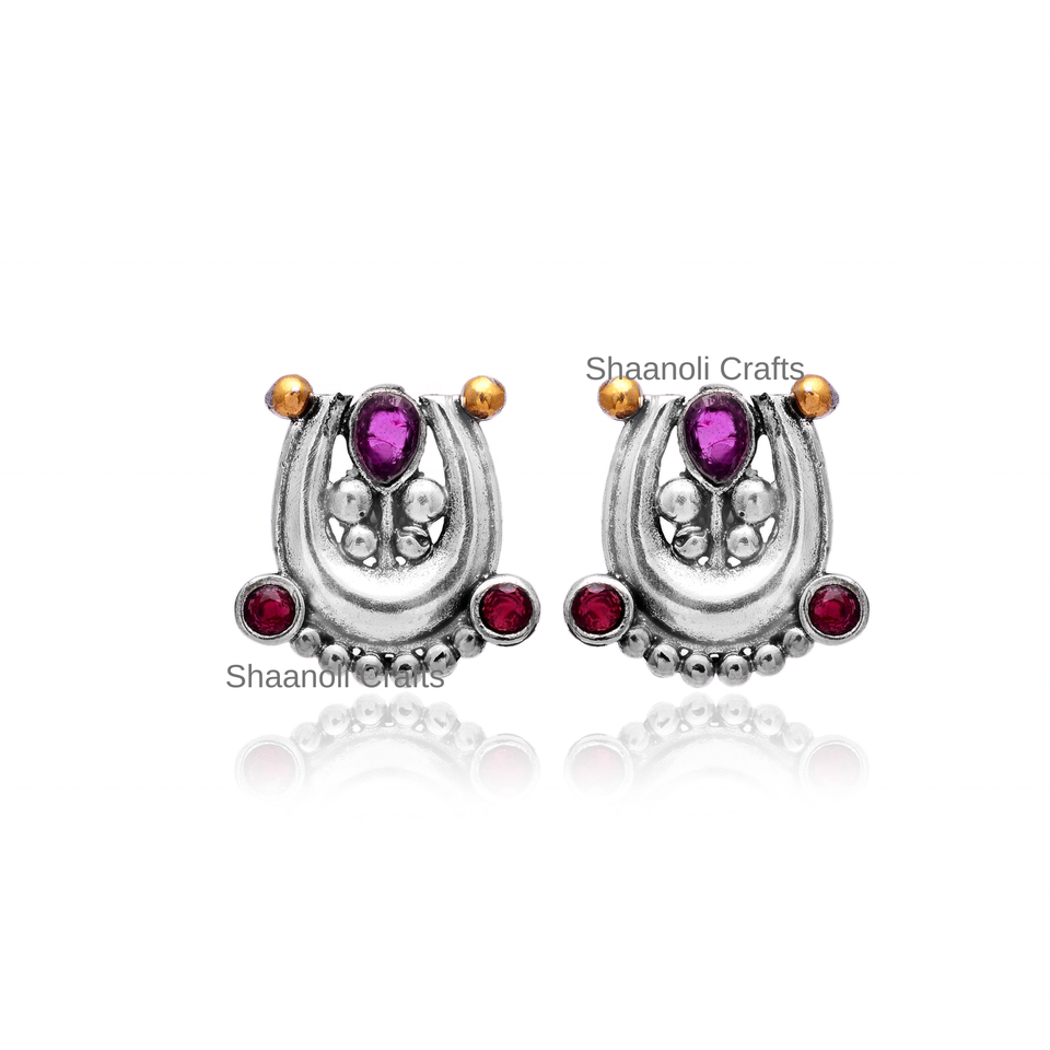 ต่างหูเม็ดออกซิไดซ์สองสีเงินแบบดั้งเดิมของชนเผ่าโบราณที่ออกแบบมาเฉพาะสำหรับงานแต่งงานงานหมั้นชุบเงิน