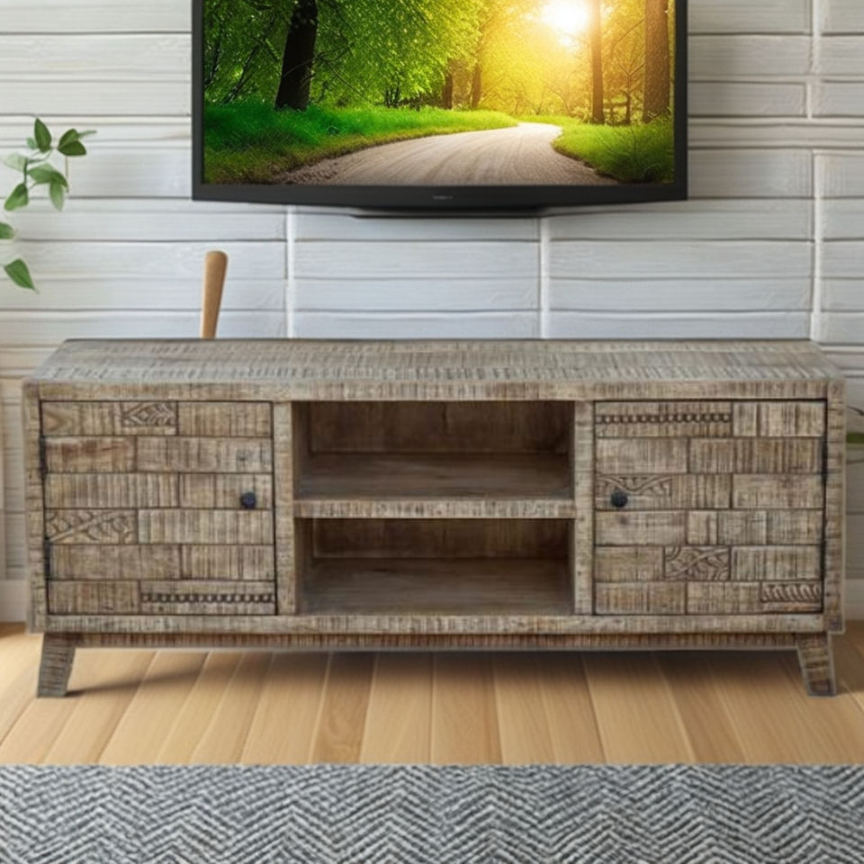 ตู้วางทีวีไม้โบราณแบบดั้งเดิม พร้อมที่เก็บของ ทำด้วยมือ เป็นมิตรกับสิ่งแวดล้อม ทนทาน เฟอร์นิเจอร์ห้องนั่งเล่น ดีไซน์ติดผนัง