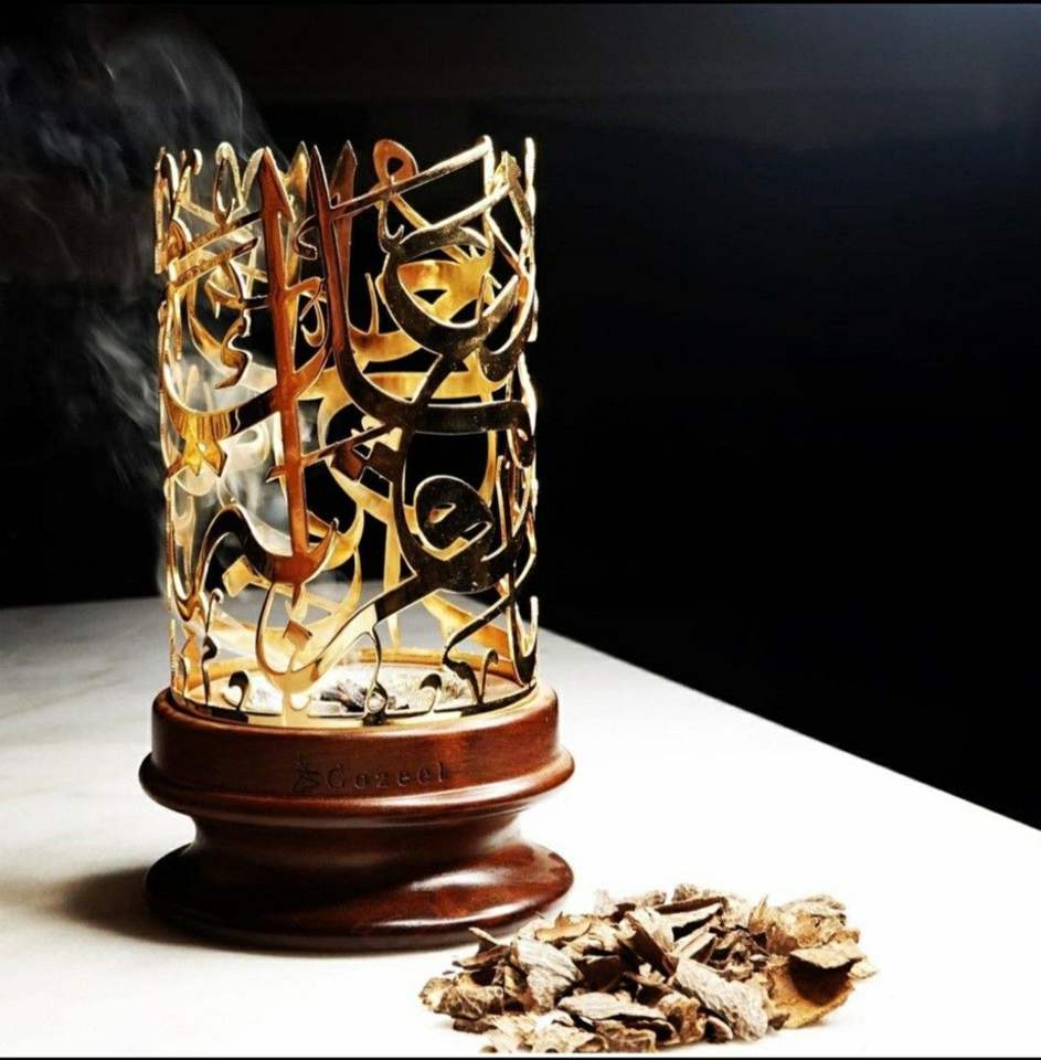 หม้อบาคูร์อาหรับแบบดั้งเดิมที่ทำด้วยมือไม้และที่จุดธูปโลหะของที่ระลึกงานแต่งงานของขวัญแต่งงาน