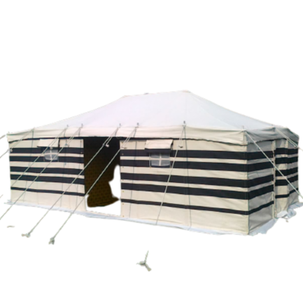 เต็นท์อาหรับแบบดั้งเดิมผ้าใบลายทางสีดำและสีขาวสำหรับตั้งแคมป์กลางแจ้งสำหรับตลาด qatar ซาอุดิอาระเบีย
