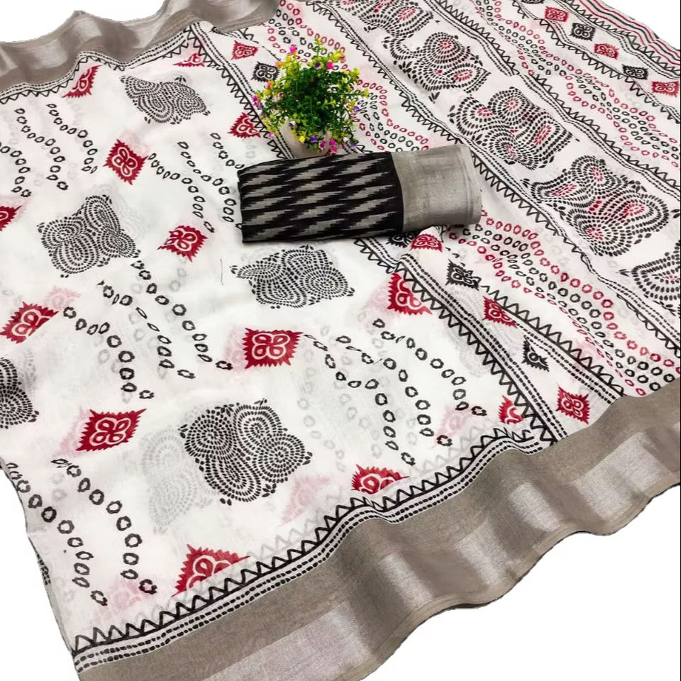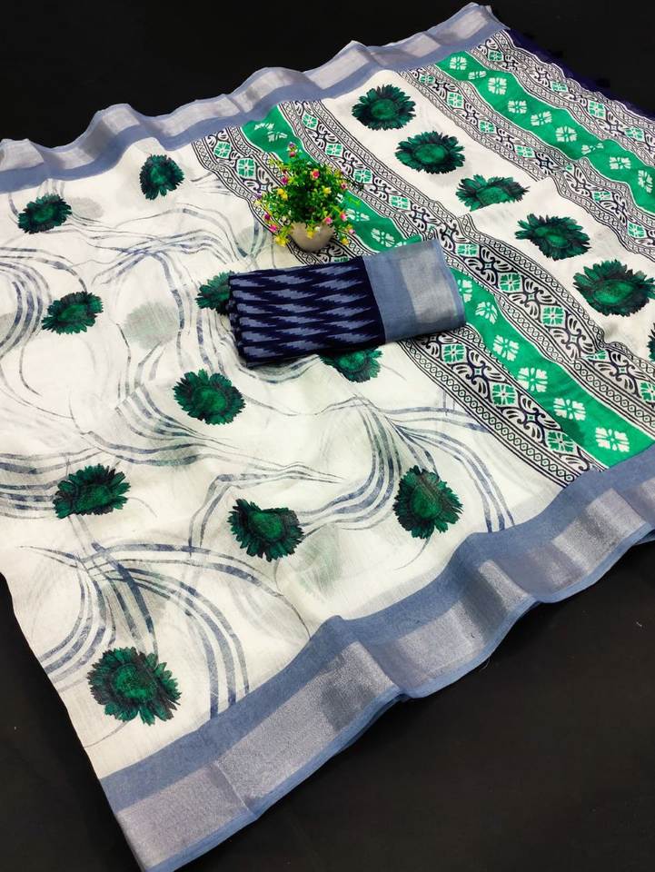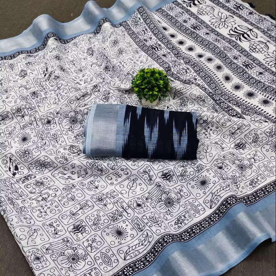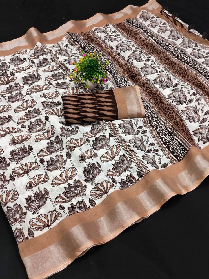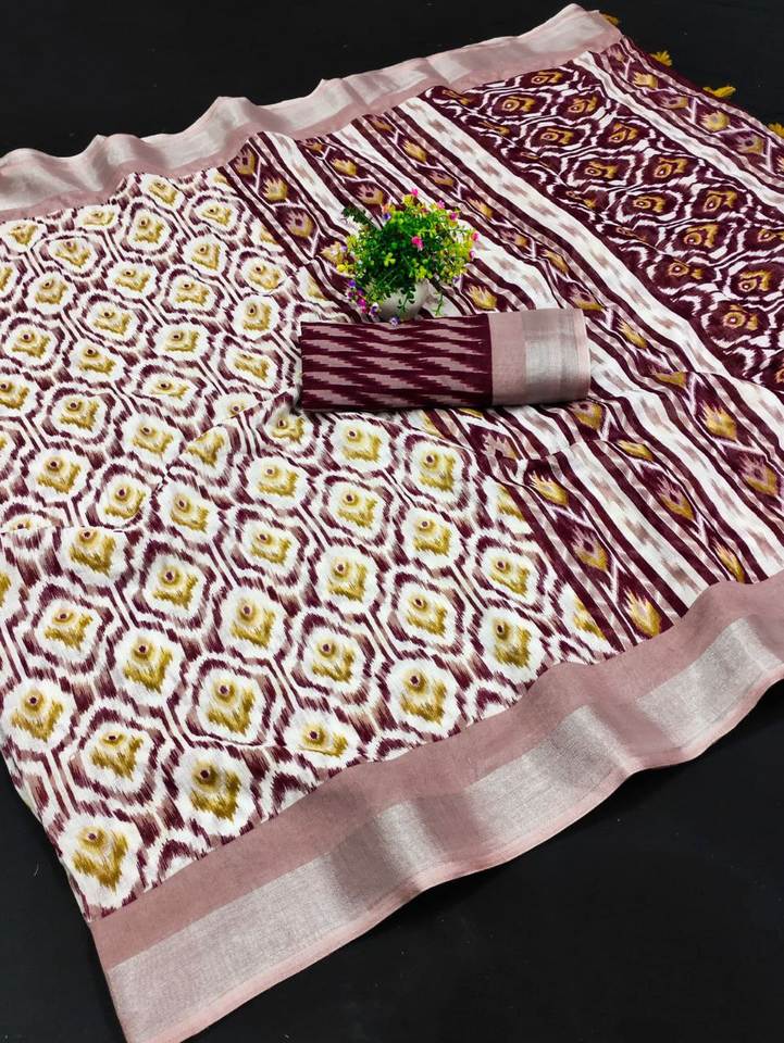 Traditional Attire Indian New Trendy Designer Soft Banarasi Cotton Lilen Saree for Ladies& Women Wear