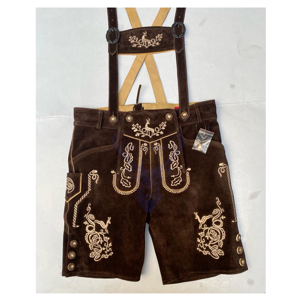 กางเกงขาสั้นหนังแพะบาวาเรียสำหรับผู้ชายสไตล์เยอรมันกันยับ