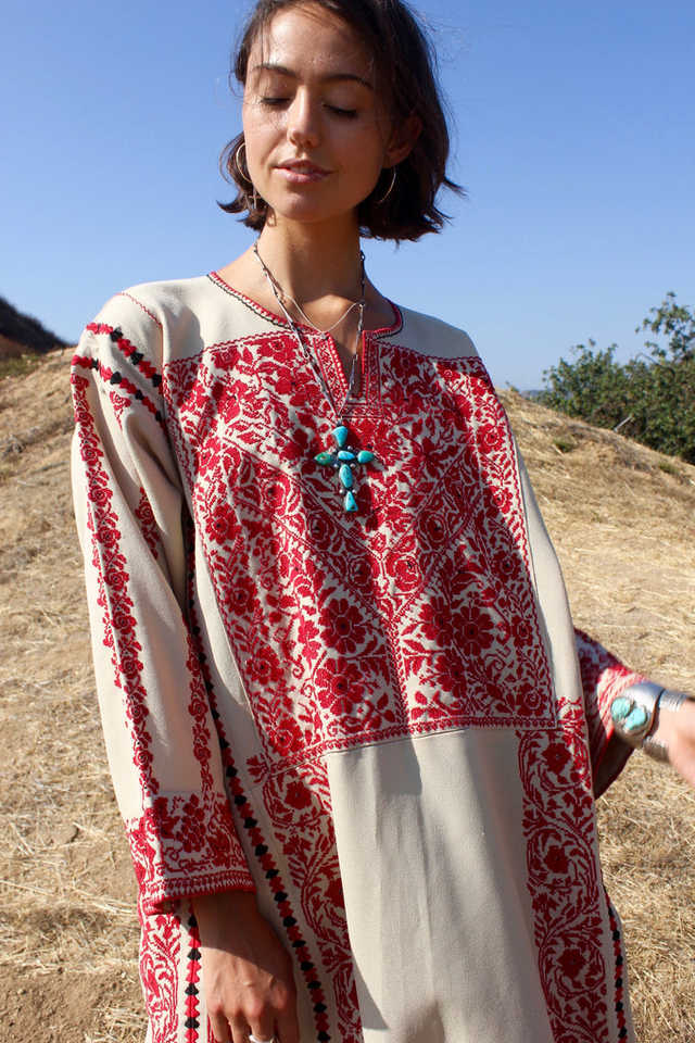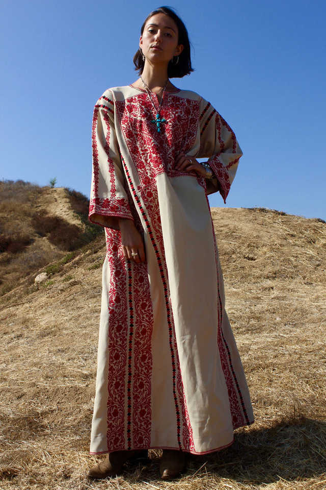 ชุดคาฟตันแบบดั้งเดิมของชาวเบดูอิน ไซส์พลัส สไตล์ลำลอง ยาวคลุมเท้า ทรงเอไลน์ ปักลายด้วยมืออย่างประณีต เป็นมิตรต่อสิ่งแวดล้อม ผ้าฝ้าย 100%