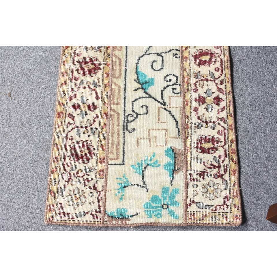 พรมขนแกะ8.1ft สีเบจทำด้วยมือลายสี่เหลี่ยมผืนผ้างานปะติดลายทางสำหรับห้องนั่งเล่นยางสำหรับบ้าน