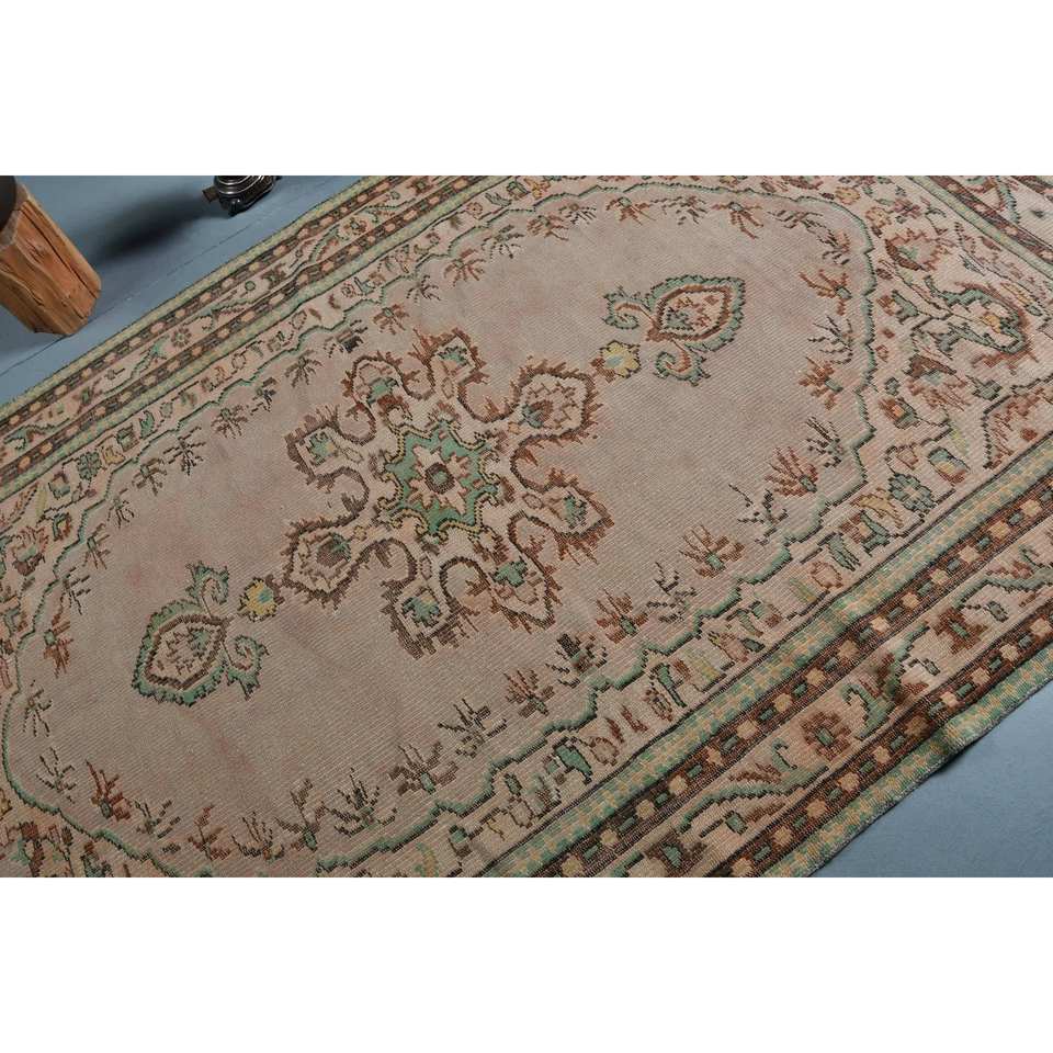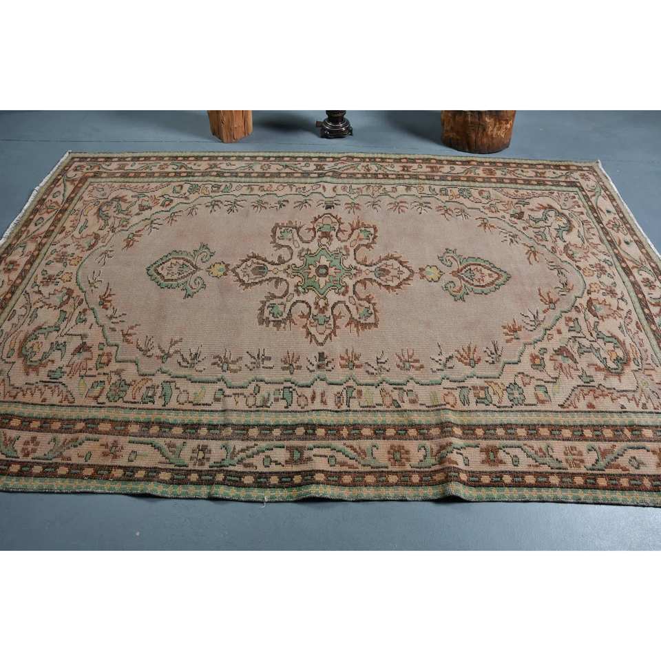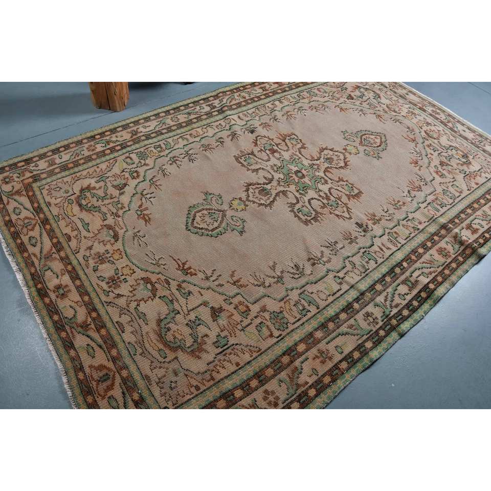 พรมตุรกีสีเบจสีน้ำตาลวินเทจแบบดั้งเดิม5.6x8.7ft รูปแบบสี่เหลี่ยมผืนผ้าคลาสสิกสำหรับห้องนอนห้องนั่งเล่นห้องโถง-พรมข้างเตียง