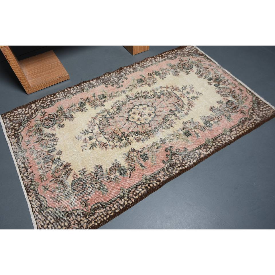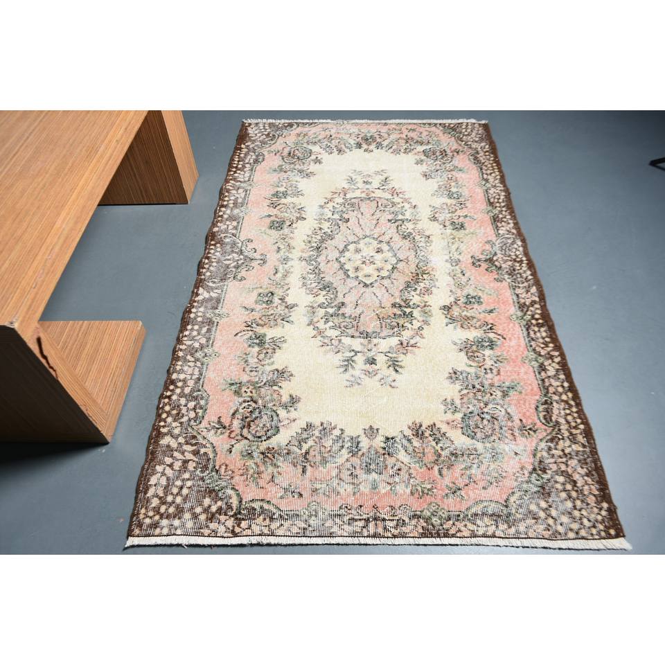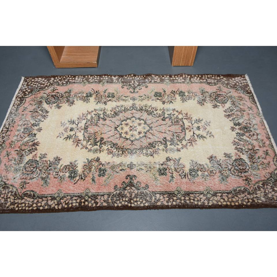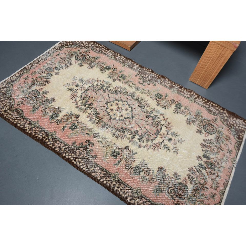 พรมขนแกะสีน้ำตาลเบจแบบดั้งเดิม6.4ft 3.9ชิ้นพรมสี่เหลี่ยมสไตล์ตุรกีคลาสสิกสำหรับห้องนั่งเล่นพรมข้างเตียงทำจากยางเย็บปะติดปะต่อกัน