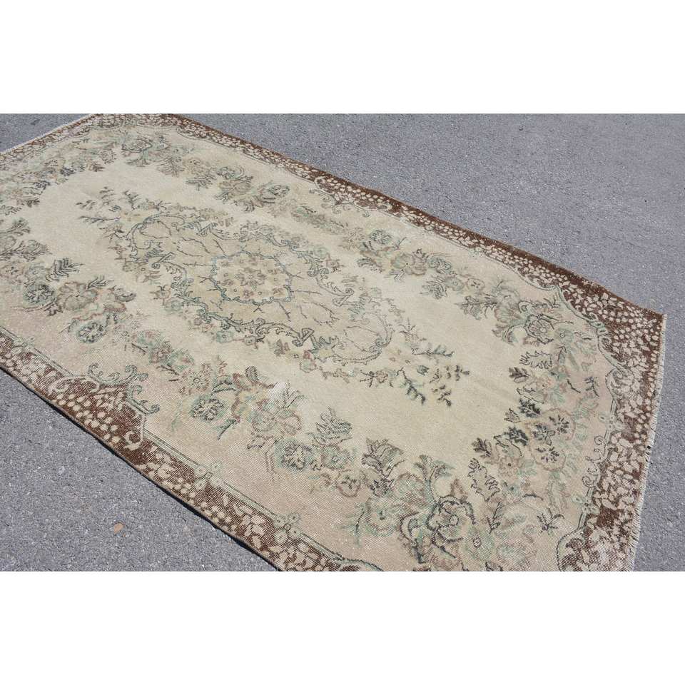 พรมขนแกะสีน้ำตาลเบจแบบดั้งเดิมขนาด5.2x9.4ฟุตงานเย็บปะสี่เหลี่ยมผืนผ้าสไตล์วินเทจสำหรับวัยรุ่นพรมข้างเตียง