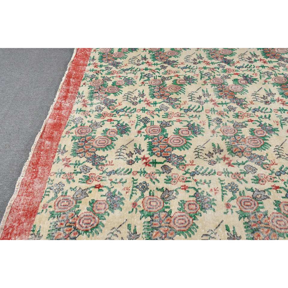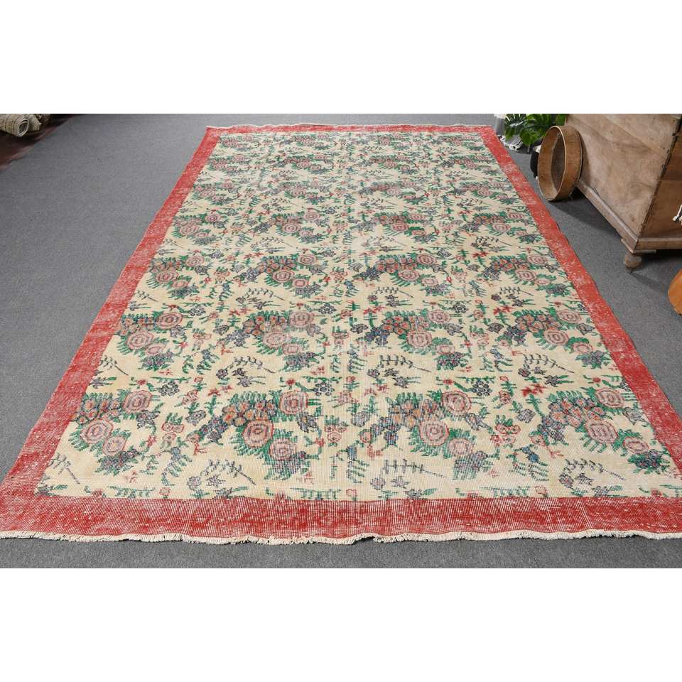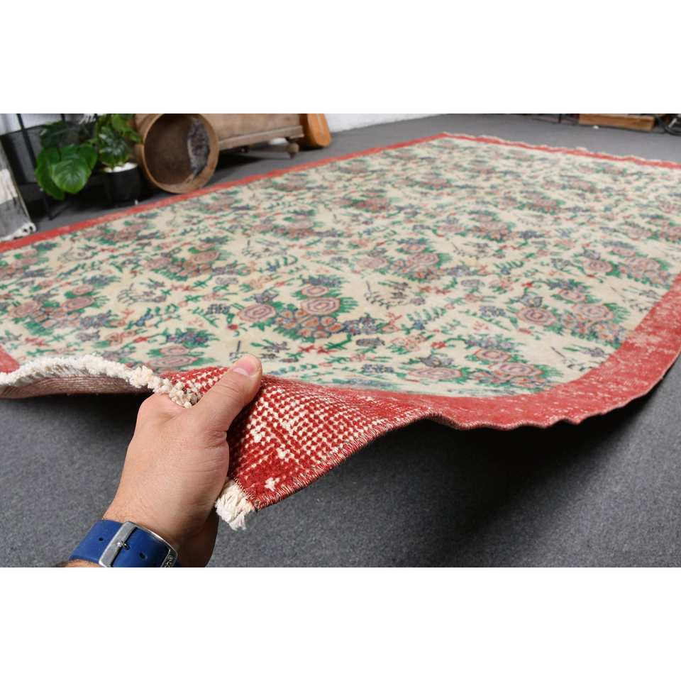 พรมขนแกะสีเบจเย็บปะสีแดงแบบดั้งเดิมพรมยางสี่เหลี่ยมขนาด6.8x10.9ฟุตทำด้วยมือพรมยางสำหรับนั่งเล่นข้างเตียง