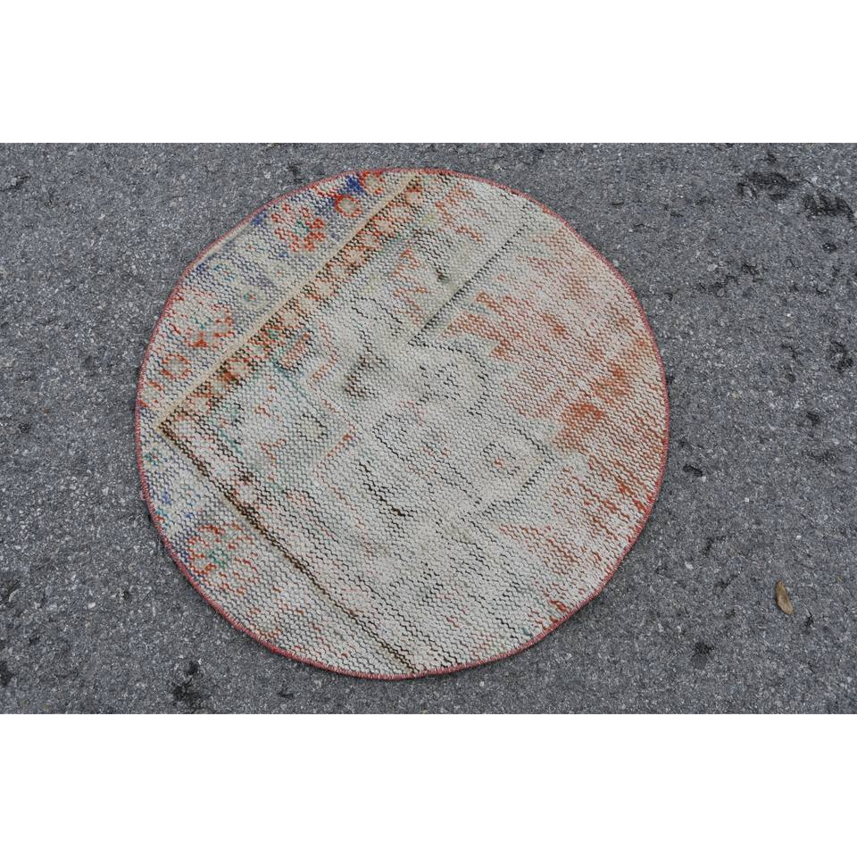พรมตุรกีโบราณสีเบจแบบดั้งเดิม2.3x2.3ft การออกแบบการเย็บปะติดปะต่อกันวัสดุยางเหนียวสำหรับวัยรุ่นข้างเตียงโถงทางเดิน4เมตร