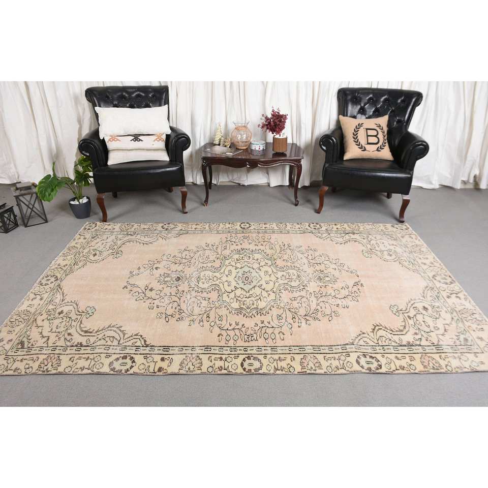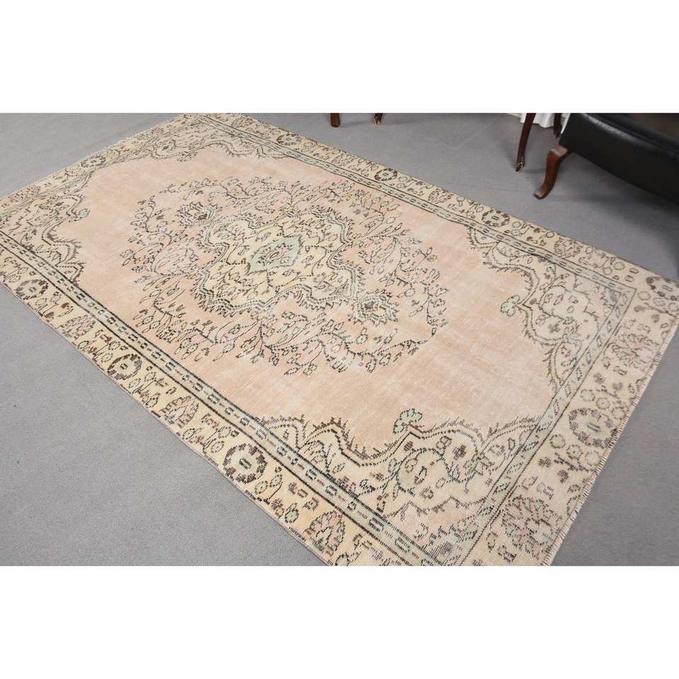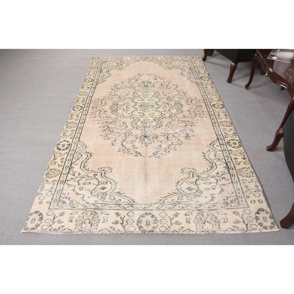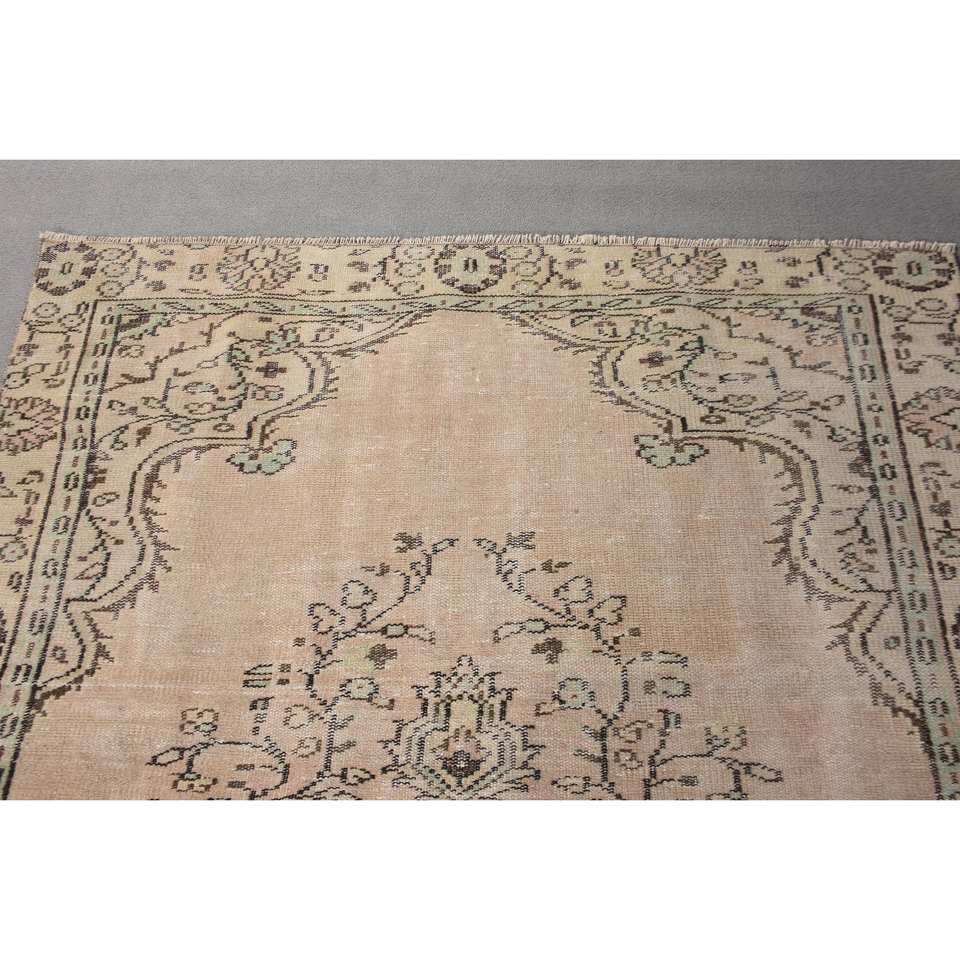 พรมขนสัตว์สีเบจแบบดั้งเดิม5x8.6ft งานเย็บปะสี่เหลี่ยมผืนผ้าตุรกีสำหรับทางเข้าบ้านห้องนั่งเล่น