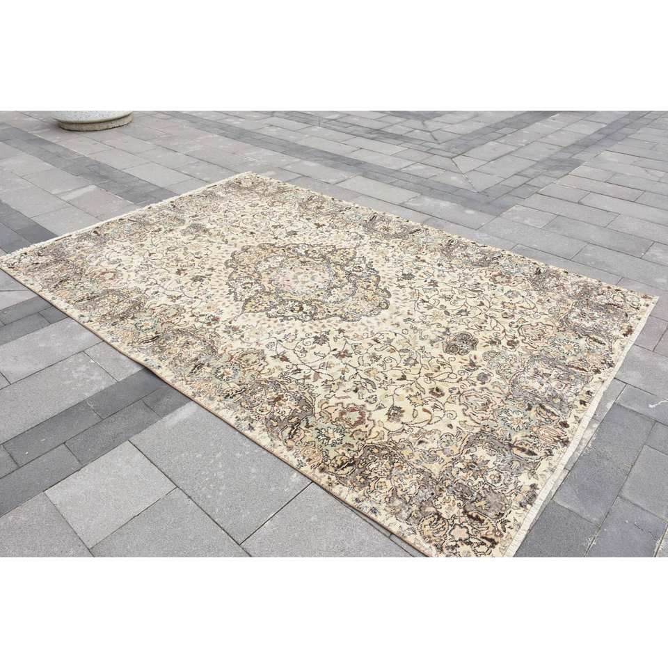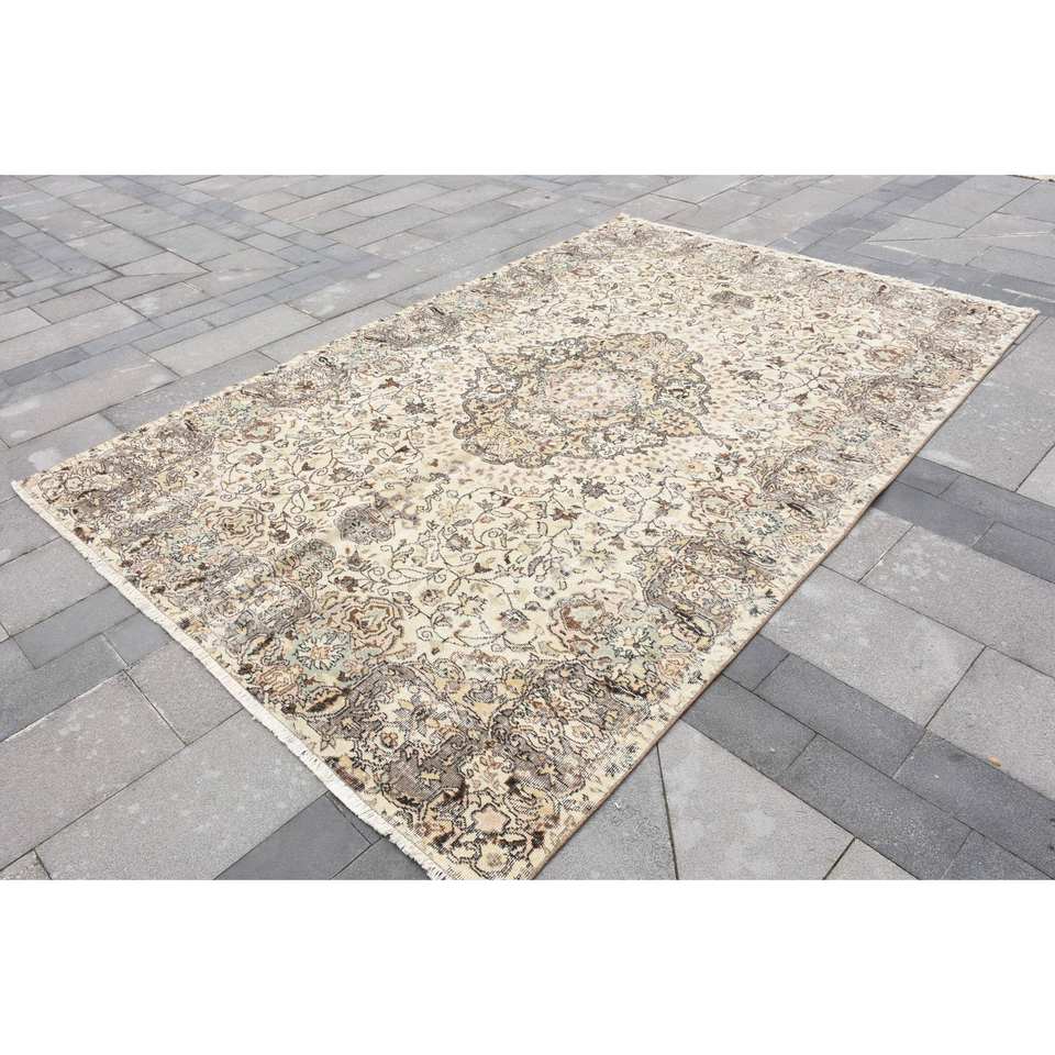 พรมขนสัตว์สีเบจแบบดั้งเดิม9.7ft 6.6 x งานแฮนด์เมดพรมตุรกีแผ่นยางรองสำหรับทางเข้าห้องนั่งเล่นห้องโถงเย็บปะติดปะต่อกันเป็นรูปสี่เหลี่ยมผืนผ้า