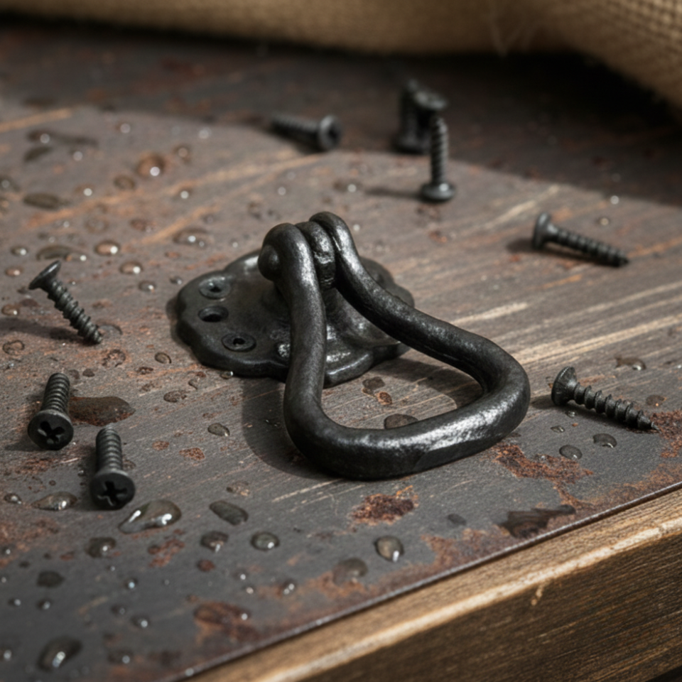 มือจับตู้แบบห่วงเหล็กสีดำแบบดั้งเดิมอุปกรณ์ครัวโบราณแบบเรียบง่ายทนทานกันสนิมสำหรับตู้ลิ้นชัก