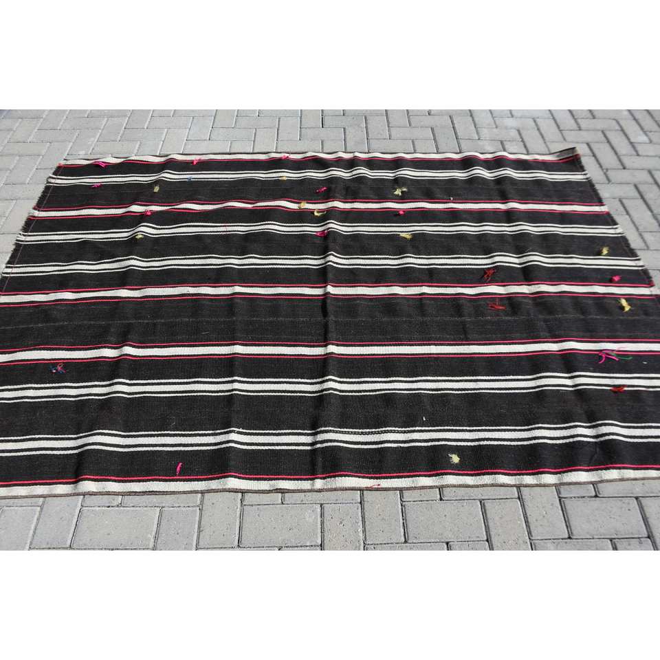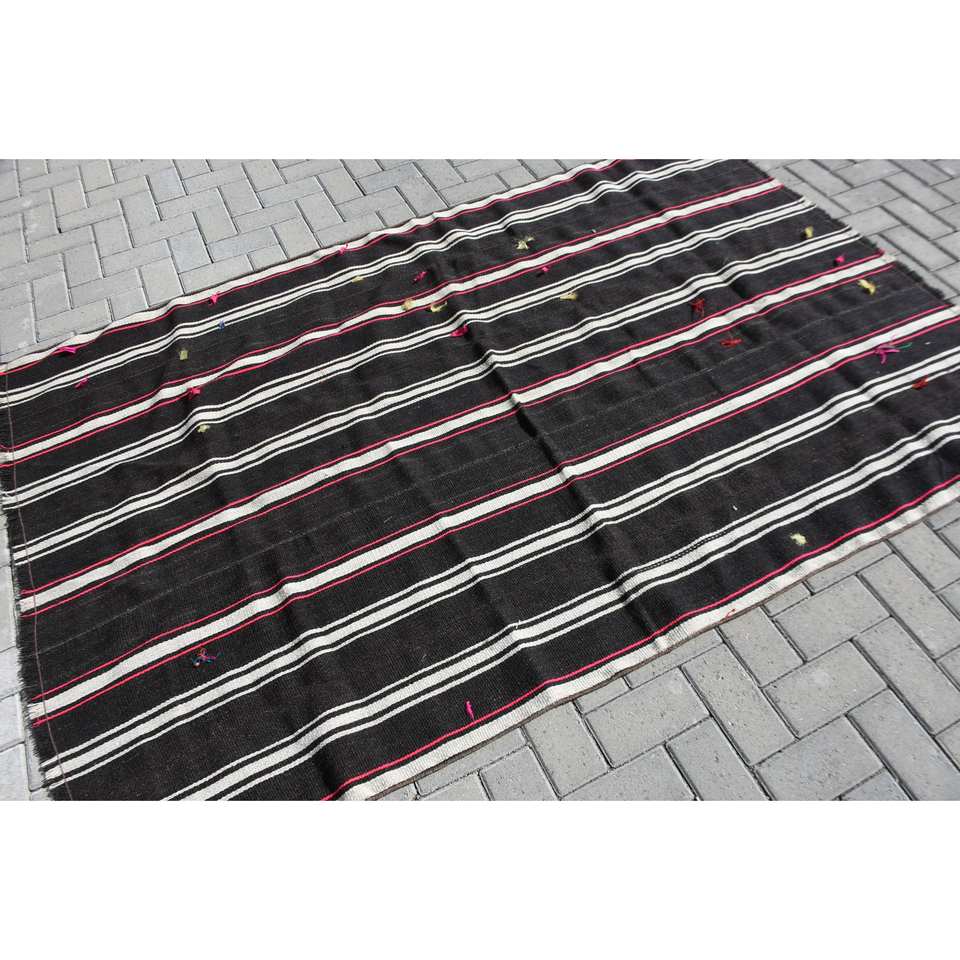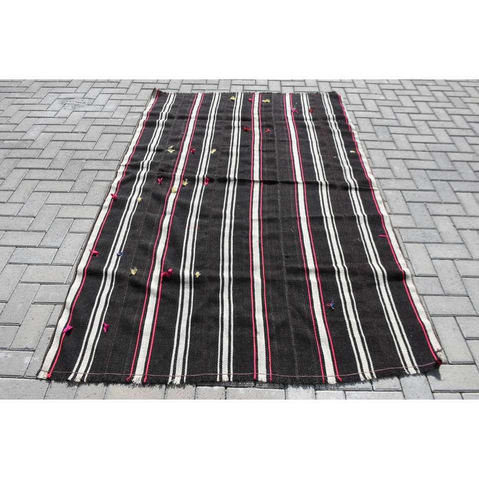 พรมขนสัตว์สีดำเย็บปะติดปะต่อกันสีขาวแบบดั้งเดิม4.9x7.3ฟุตดีไซน์ตุรกีคลาสสิกสำหรับทางเดินข้างเตียงสี่เหลี่ยมผืนผ้า
