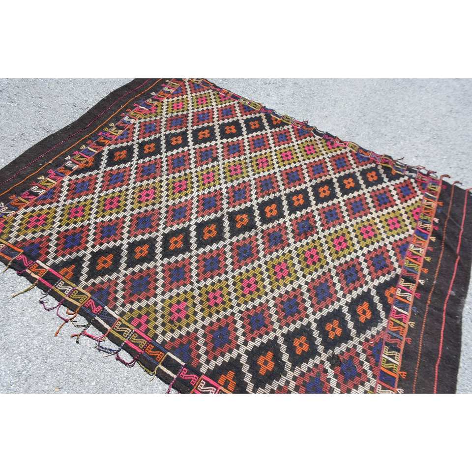 พรมขนแกะสีดำแบบดั้งเดิมขนาด5.3x7.2ฟุตงานแฮนด์เมดพื้นที่ขนาดใหญ่แบบตุรกีสี่เหลี่ยมผืนผ้างานเย็บปะต่อกันสำหรับวัยรุ่นยางสำหรับห้องโถงห้อง