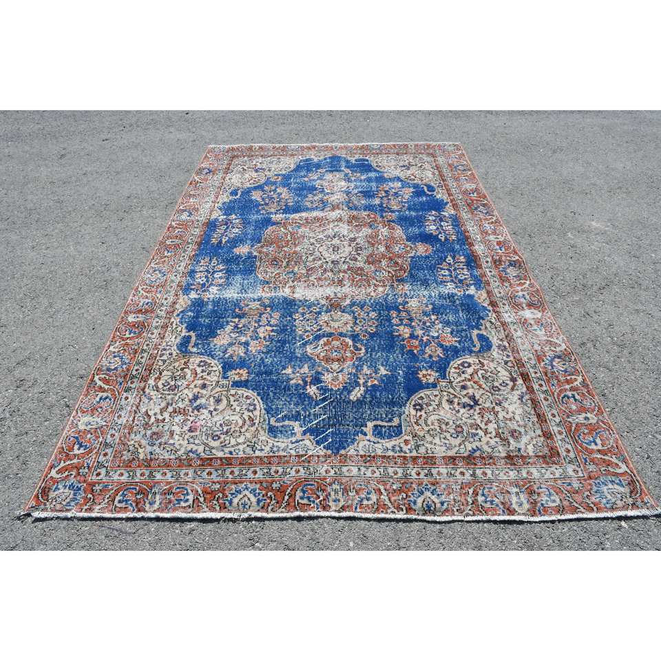 พรมขนแกะลายเย็บปะสีส้มสีน้ำเงินแบบดั้งเดิมขนาด5'8 "x 9 'สไตล์ตุรกีสไตล์ทาบริซยางเส้นใยวิสคอสสำหรับวัยรุ่นโถงทางเดินสี่เหลี่ยมผืนผ้าขนาด9x12"