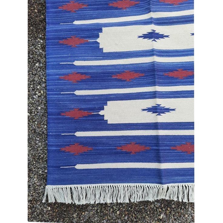 พรมผนังกันแบคทีเรียขนสัตว์แบบทอลายแถบสีฟ้าแบบดั้งเดิมทำด้วยมือผ้าทอจากอินเดียเป็นมิตรต่อสิ่งแวดล้อมแบบย้อนกลับได้