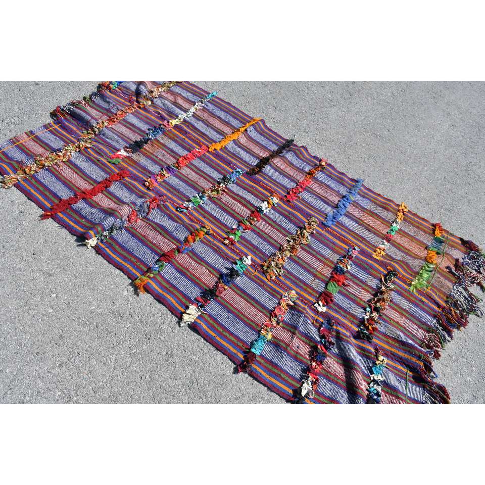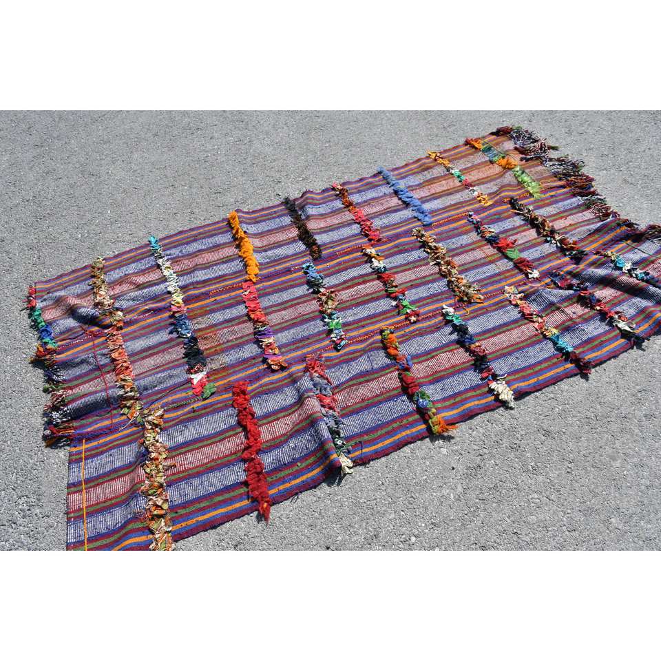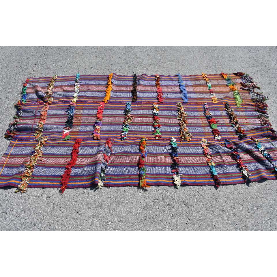 พรมขนสัตว์สีฟ้าแบบดั้งเดิม7.2ft X 4.1 X ทรงสี่เหลี่ยมผืนผ้าตุรกีดีไซน์แบบเย็บปะติดปะต่อกันสำหรับห้องนั่งเล่นทางเข้าห้องโถง