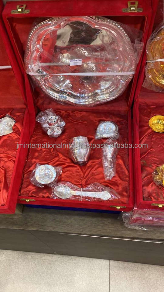 ชุดของขวัญ JM ชุดของขวัญทองเหลือง pooja thali โบฮีเมียน Jm46009ดั้งเดิมสำหรับ Diwali