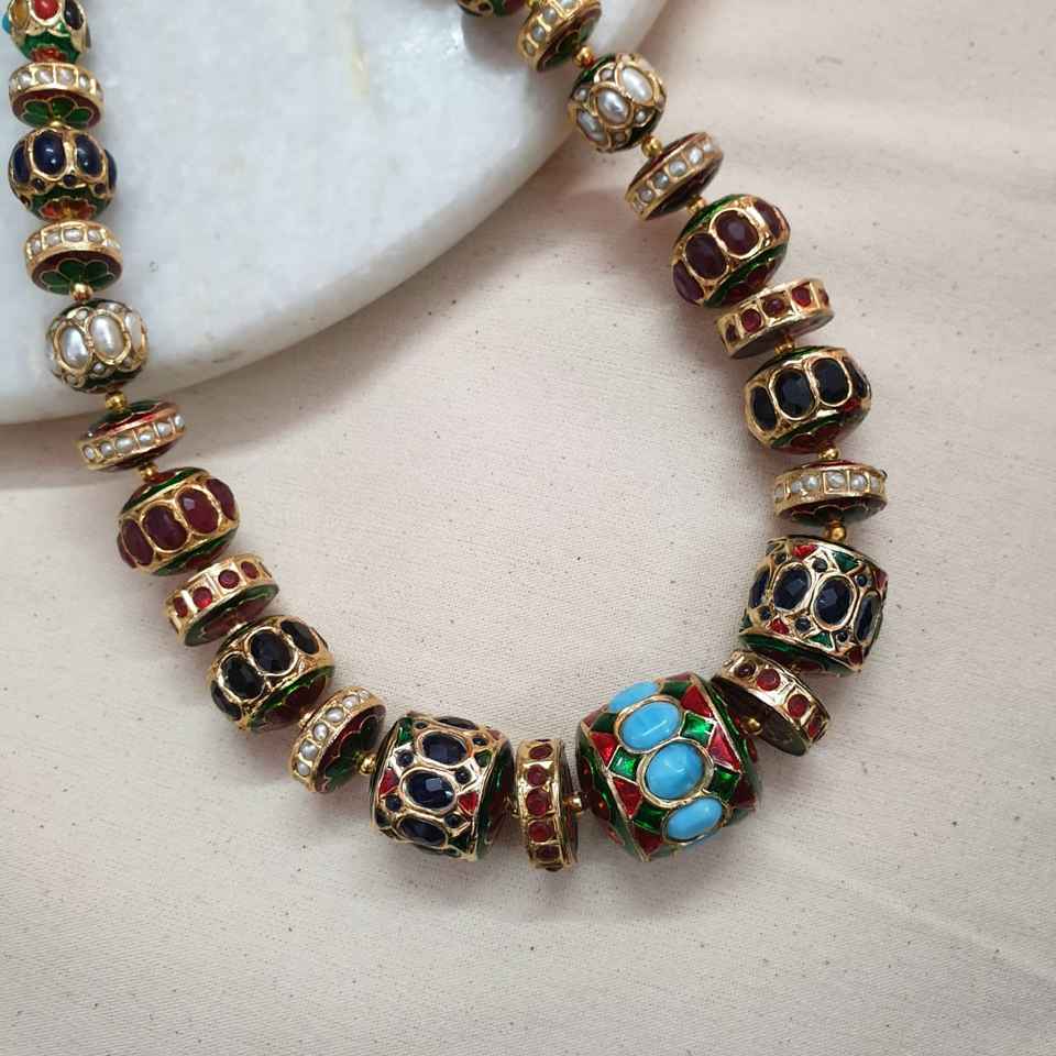สร้อยคอลูกปัด jadau โบฮีเมียนแบบดั้งเดิมทันสมัยทางศาสนาอาเกตเพชรไม้เลียนแบบมุกจำนวนคนรักรูปร่างสำหรับโซ่
