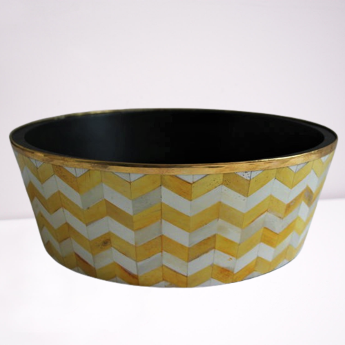 ตะกร้าผลไม้ดีไซน์ซิกแซกขอบโค้งมนทำจากทองเหลืองฝังกระดูกแบบดั้งเดิมสำหรับบ้านโรงแรมร้านอาหารสวนถาดเสิร์ฟ