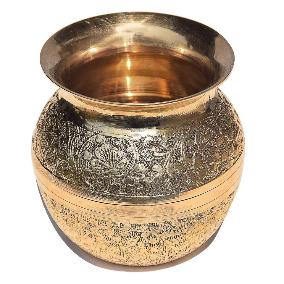 ภาชนะทองเหลืองดั้งเดิม lota JUG Kalash sombu theertha sembu ทรงกลมสำหรับ karwachauth Diwali Mandir ใช้คุณสมบัติที่ยั่งยืน