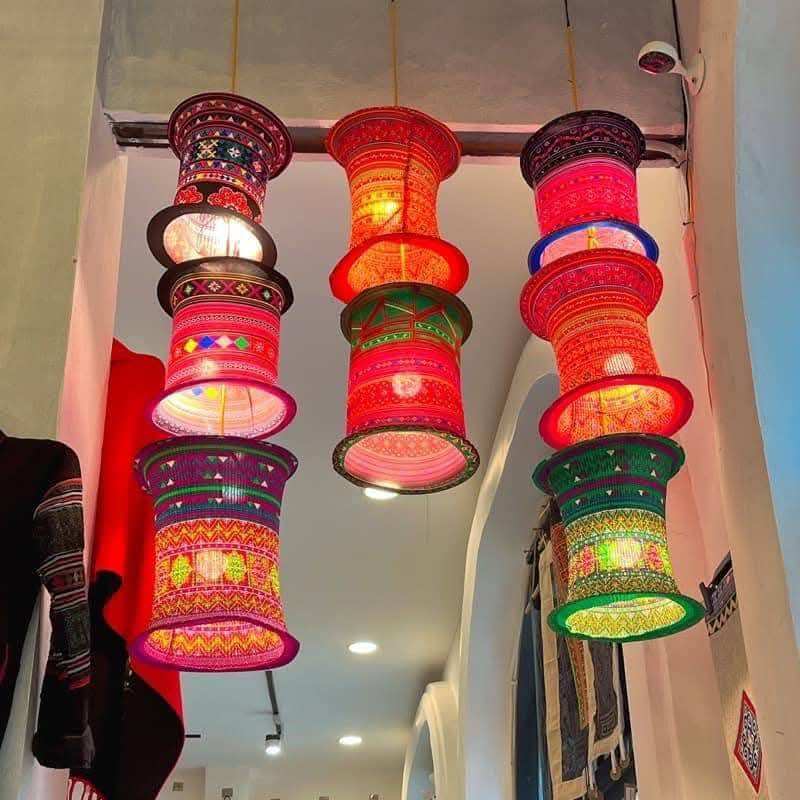 โคมไฟแขวนผ้าปักแบบดั้งเดิมโคมไฟผ้าทำด้วยมือจากเวียดนาม