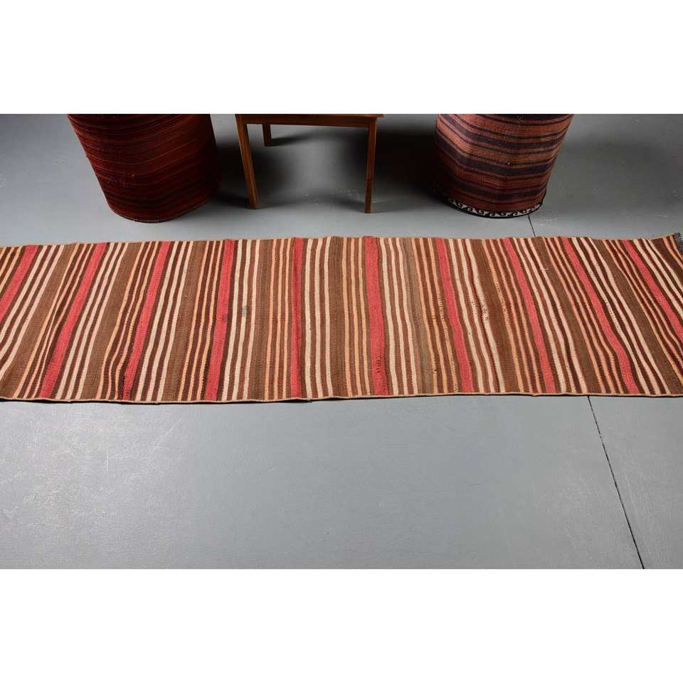 พรมตุรกีโบราณสีน้ำตาลแบบดั้งเดิมพื้นที่ขนาดใหญ่2x7.9ft การออกแบบการเย็บปะติดปะต่อกันสี่เหลี่ยมผืนผ้าคลาสสิกยางขนสัตว์สำหรับห้องนอนห้องโถง