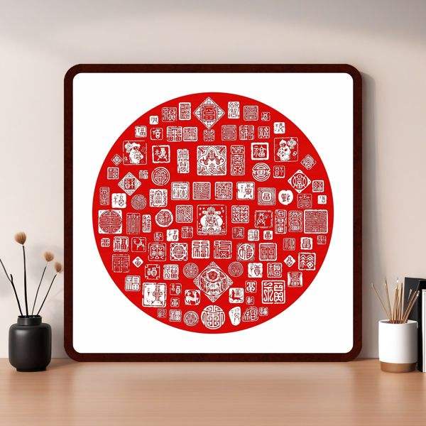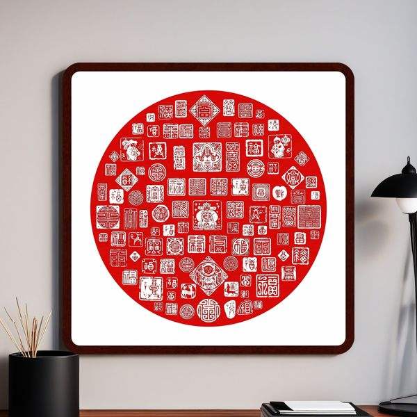 Traditional Chinese Art Hundred Blessing Tayin Energy Painting 22.4 X 22.4 Inch (57X57 Cm) Size Elegant Plaque