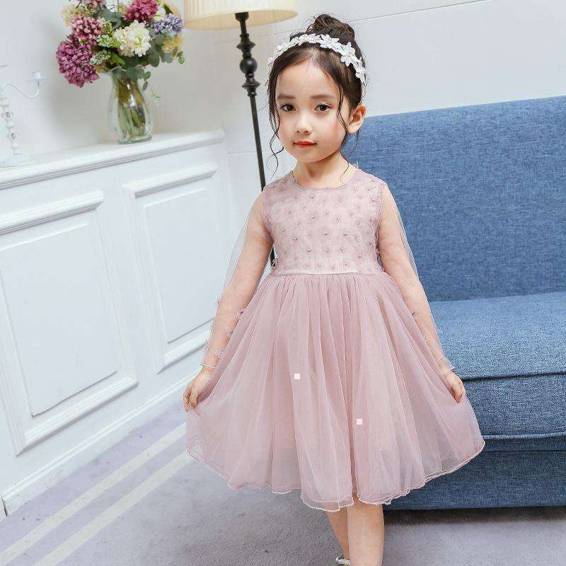 ชุดเดรสเจ้าหญิงผ้าชีฟองแฟนซีสำหรับเด็กผู้หญิง ประดับภาพปักลาย