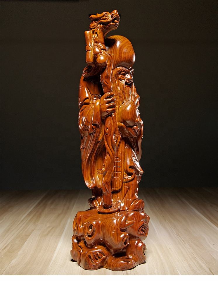 รูปปั้นฟู่ลู่ชิว ศิลปะฮวงจุ้ยจีนโบราณ ทำจากไม้พะยูง สื่อถึงอายุยืน ความมั่งคั่ง ความสุข และการเจริญรุ่งเรือง แกะสลักสำหรับตกแต่งบ้านและสำนักงาน