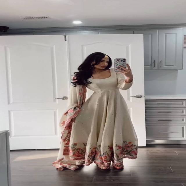 ชุดสูทปักไหมชินอนแบบดั้งเดิมพร้อมด้ายเย็บรวมถึงกางเกงเย็บและตกแต่ง dupatta