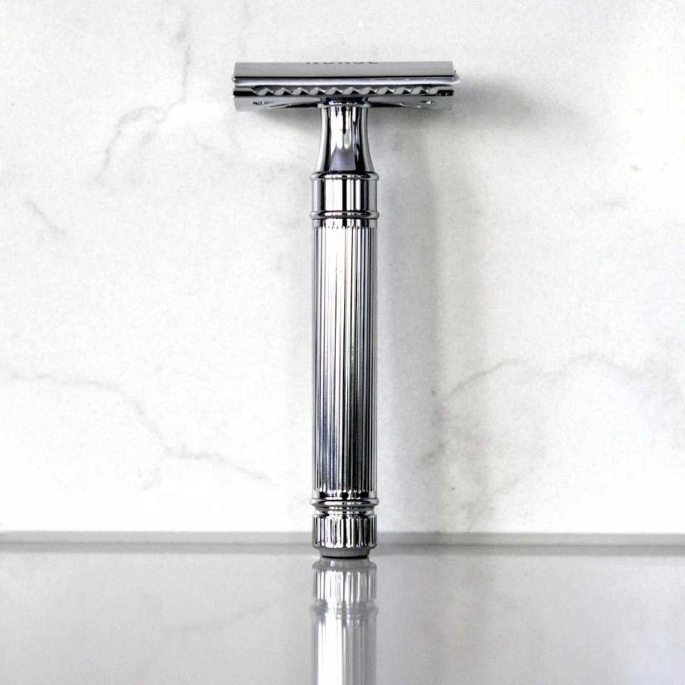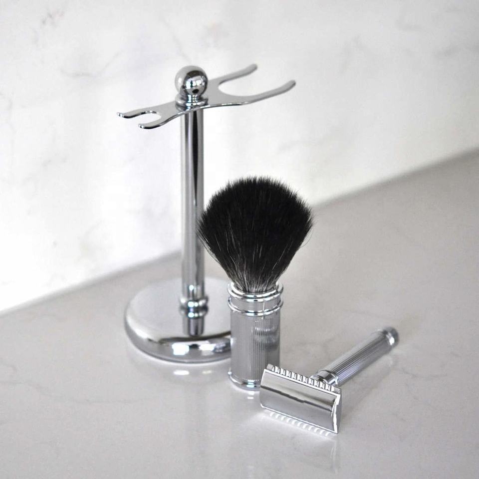 ชุดโกนหนวดชุบโครเมี่ยมแบบดั้งเดิมของผู้ชาย,ใบมีดโกนแบบปิดเพื่อความปลอดภัยแปรงโกนเงินและที่โกนหนวดที่ปลอดภัย