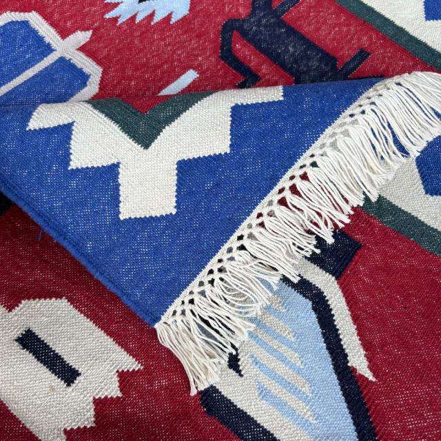 พรม dhurrie ผ้าฝ้ายแบบดั้งเดิมสำหรับห้องนั่งเล่นห้องนอนและห้องครัวสีแดง002