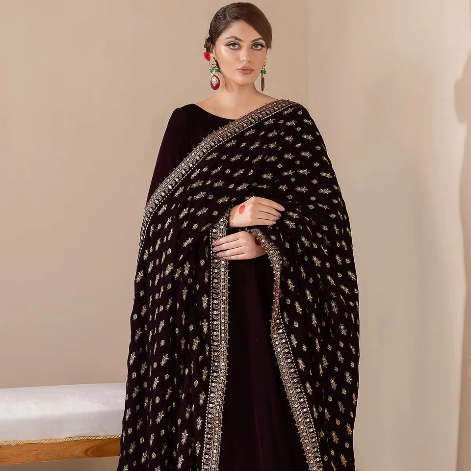 ผ้าคลุมไหล่กำมะหยี่แฟนซีแบบดั้งเดิมของผู้หญิงผ้าโพลีเอสเตอร์เนื้อแข็งปักเลื่อมระบายอากาศได้ดีสำหรับฤดูหนาว