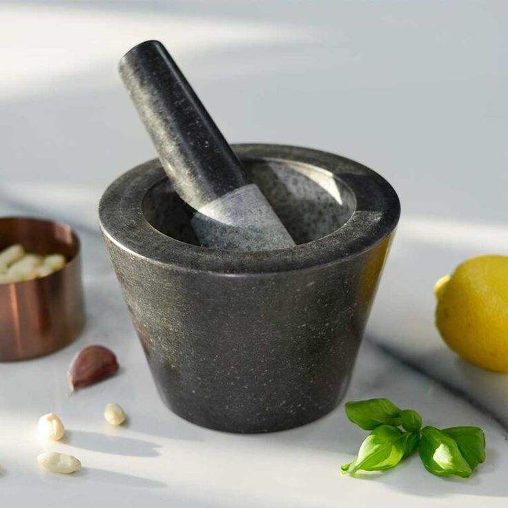 ครกหินอ่อนและสากพร้อมฐานหนักดีไซน์แบบดั้งเดิมเหมาะสำหรับการบดสมุนไพรแห้งและการใช้ในครัวออร์แกนิก