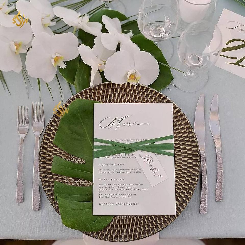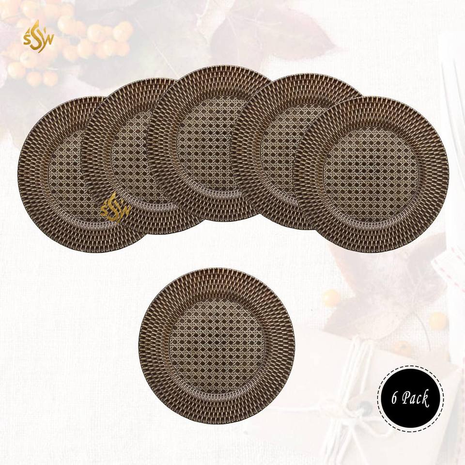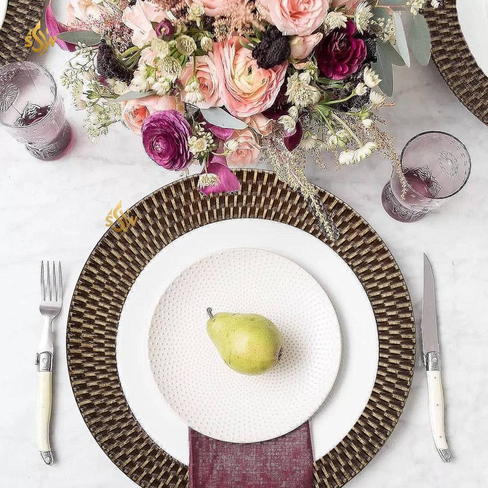 แผ่นเชือกถักหวายสำหรับตกแต่งโต๊ะจานชาร์จอาหารดีไซน์แบบดั้งเดิมทันสมัย